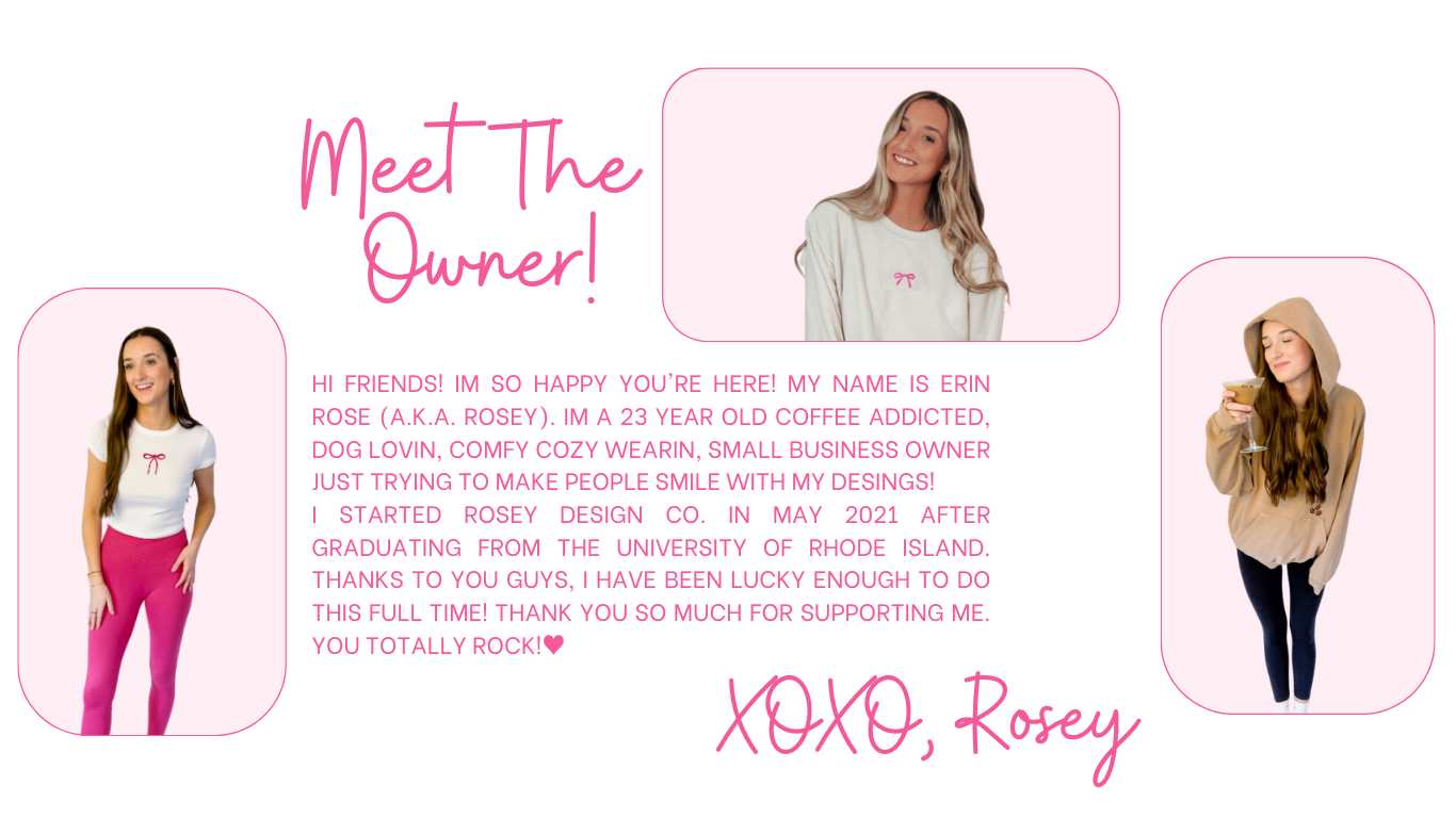 shop product"I fell in love with a design on the Rosey Design Co website, and wondered if it could be created on a different option (shirt or crewneck instead of a hoodie). I figured it could not hurt to ask, and I sent an inquiry through the website. To my great delight, I was told that a custom order was an option, and Erin patiently worked with me to create the item. I received my custom sweatshirt shortly after sending payment, and I could not be more thrilled. I love it and received a compliment the very first time I wore it!"