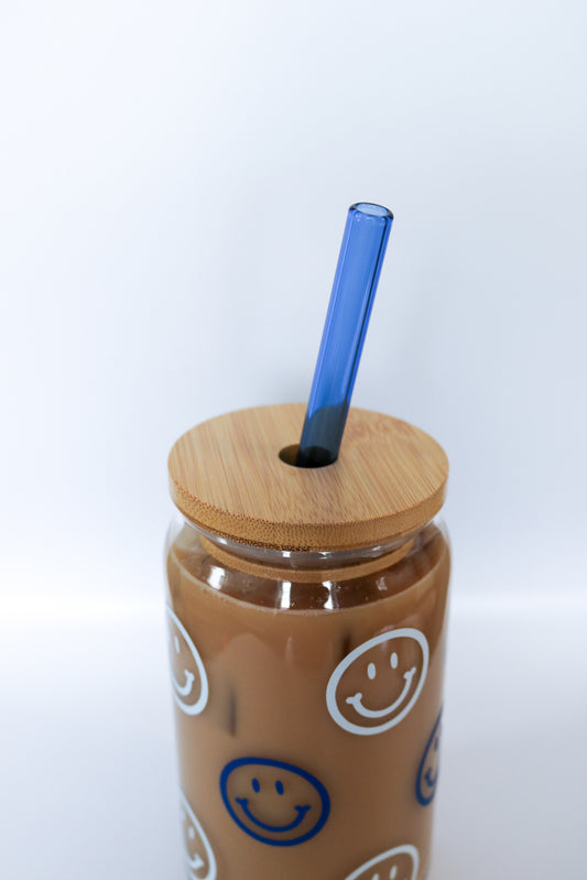 Blue Smiley Glass Can