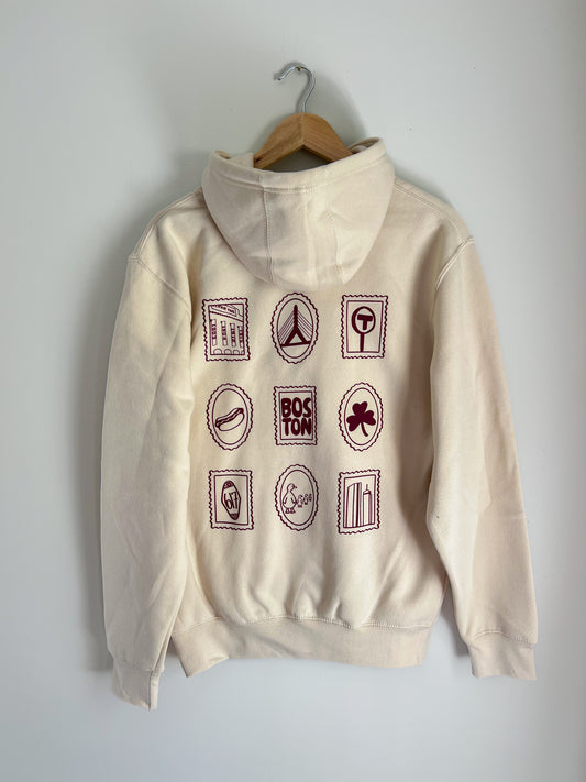Boston Stamp Hoodie (Sand with Maroon Ink)