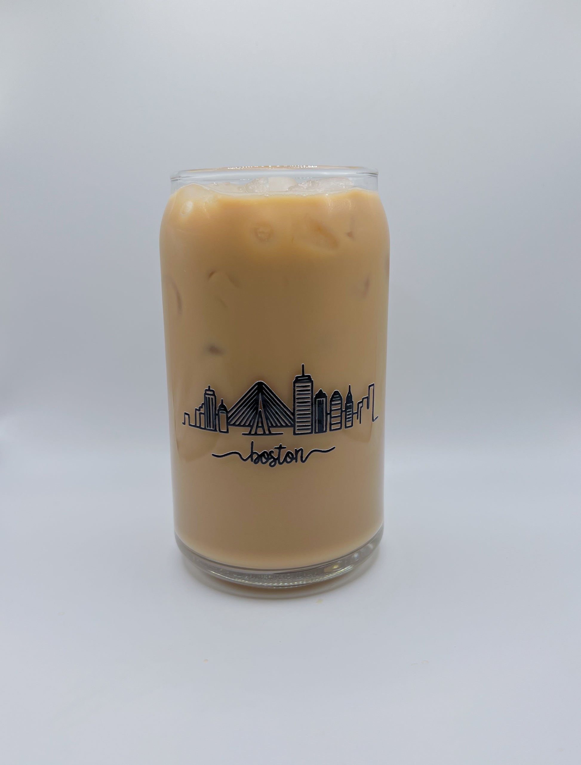 hand decorated glass can designed to hold your favorite hot or cold drinks!